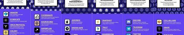 傳統組織的清晰架構和高效決策流程都受益于高度發達的運營基礎設施,而DAO的當前階段是從頭開始構建和傳統組織類似的基礎設施,用于治理、薪酬、資金管理、溝通等。目前DAO的基建生態才剛剛開始,隨著DAO的應用場景被不斷開拓出來,對其基礎設施的要求將會越來越復雜。