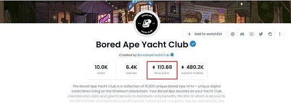 例如在OpenSea上,無聊猿游艇俱樂部在研究員編輯時的地板價就是110.69ETH,約36萬美元,是無聊猿第7656號的價格。