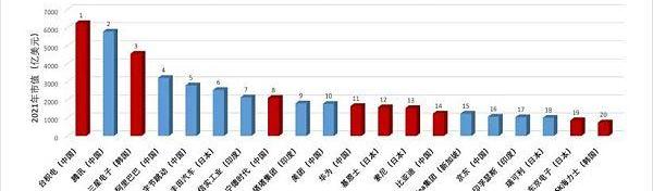 圖:亞洲科技公司2021年市值排名TOP20