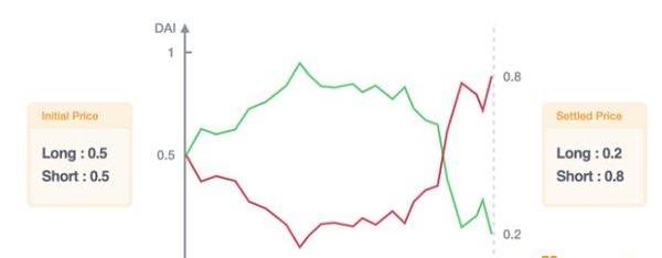 Long的結算價會與期間累積的利率大小有關,其價格限定于$0至$1之間,而Short的結算價則為1-Long,兩者互補,因此若Long的價格上漲,Short則會自動下降,反之亦然。