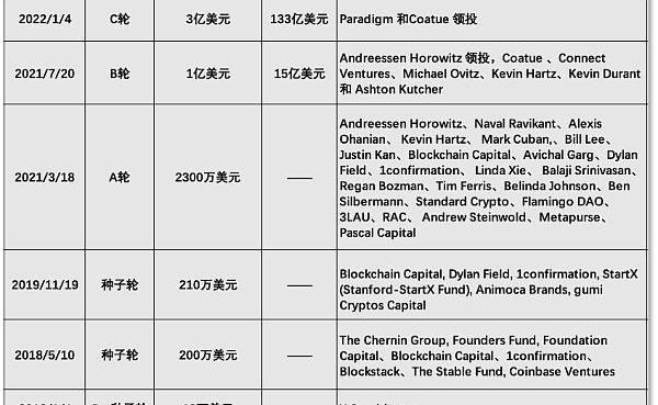 XRP/HKD+2.61%1月4日,全球最大的NFT交易平臺OpenSea宣布,以133億美元的投后估值實現了C輪3億美元融資,領投機構為Paradigm和Coatue,A、B輪融資中領投方a16z未出現在C輪融資的公告中。