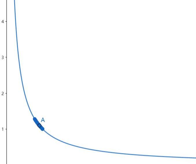 考慮極端情況,在上圖中,經過平移后上方的AMM圖形由于在B點時,用戶提供的x資產由于在實際中已全部損耗。
