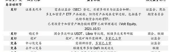 以疏代堵,不斷試水。縱觀加密資產產業鏈的若干環節,不管是發行部分的挖礦、發行,還是交易環節的經營交易所、參與交易,美國均未明令禁止,但均有嚴格的監管。主要由各監管部門發布公告,聲明哪些活動需要參照其他活動申請牌照,例如發行證券類代幣,要參照發行證券,向證監會提出申請,類似于比特幣和以太坊這樣無實際控制人的項目,可以免于申請,類似于EOS等證券類項目,需向證監會交罰款,而美國對部分加密資產的定性是商品,與其相關的期貨交易受美國商品期貨交易委員會監管。美國也有部分州,要求在本州經營加密資產相關活動服務商,需要州政府金融監管部門申請“比特牌照”,例如紐約州的BitLicense。