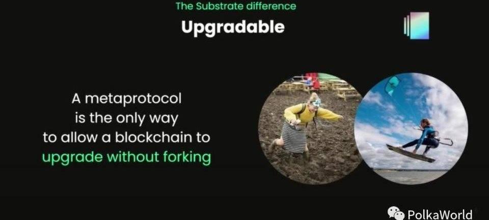 第二點就是可升級性。雖然這一點你們很多人可能都耳熟能詳了,但是還是有必要再強調一下。它是Substrate和Polkadot的重要口號和核心精神,Substrate鏈和基于Substrate創建的Polkadot都是元協議。所以它讓我們可以高效地升級、更新和吸收新技術。