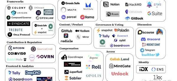 目前市場上有的工具已經包括組織架構類的工具、激勵貢獻管理的工具、小組協作的工具、任務發布和領取的工具、財務管理類的、投票類的,等等。