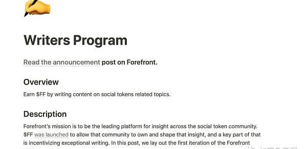 因為一個媒體最主要的就是生產內容,Forefront的主要內容除了自外部網站,還有作家激勵計劃: