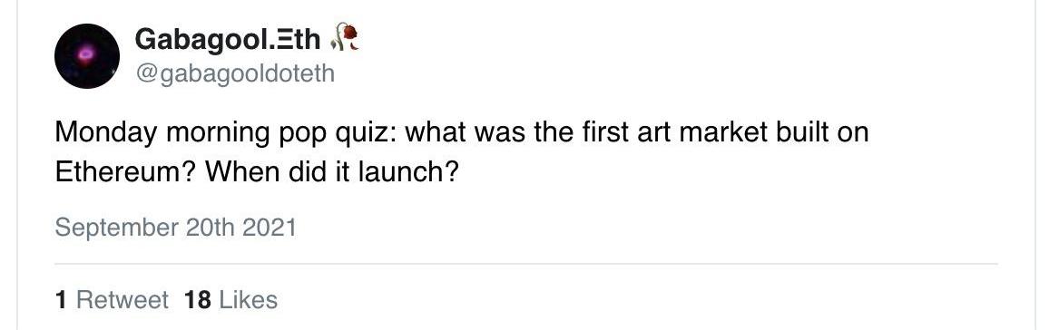 如果我問你,“最古老的以太坊藝術市場是什么”,你會怎么回答?