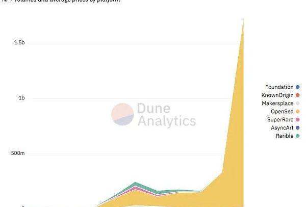 在NFT市場上半年已經刷新各種記錄的背景下,在過去兩個月時間里取得了「更進一步」的現象級爆發,NFT藏品天價成交的消息頻現,頂級機構乃至傳統行業巨頭紛紛布局甚至下場參與其中,而作為NFT市場重要基礎設施的OpenSea平臺的數據,也很好地描繪出了這波頗具震撼力的增長。