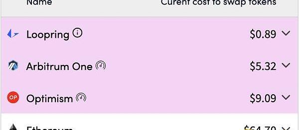 盡管推出不到兩周,Arbitrum已經開始看到巨大的吸引力:網絡上鎖定價值已經達到9600萬美元。此外,我們已經開始看到Layer2的誘人潛力,因為即使人為地減少了容量,與以太坊L1相比,Arbitrum上代幣交換的平均Gas費也降低了12倍。?
