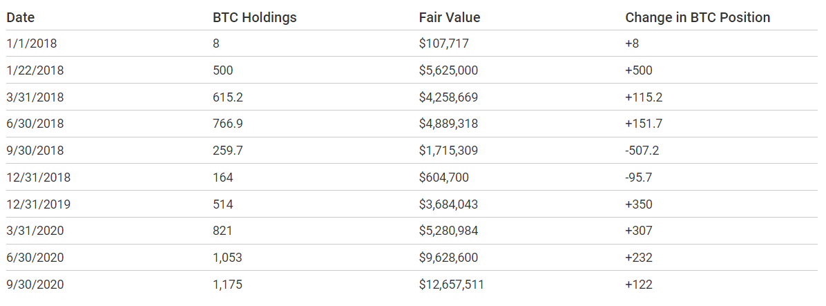 MicroStrategy是一家開發商業智能軟件的科技公司。該公司將比特幣作為主要儲備資產,今年8月,MicroStrategy宣布以2.5億美元買入比特幣,隨后又買入了1.75億美元的比特幣。