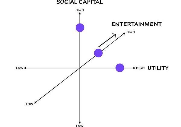 因此,與其否定一個非常明顯地正在成為現實的東西,讓我們再深入一點,把NFT放在Wei給出的那些維度里分析。我們還會納入娛樂性這個維度。
