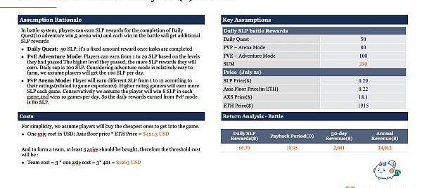 在上面的靜態模型中,有兩個關鍵變量決定了最終收益率:SLP價格和Axie底價。