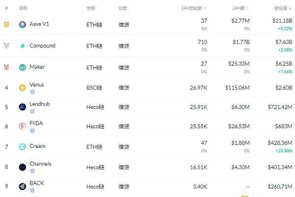 鎖倉量排名前十的借貸平臺排名來源:DeFibox