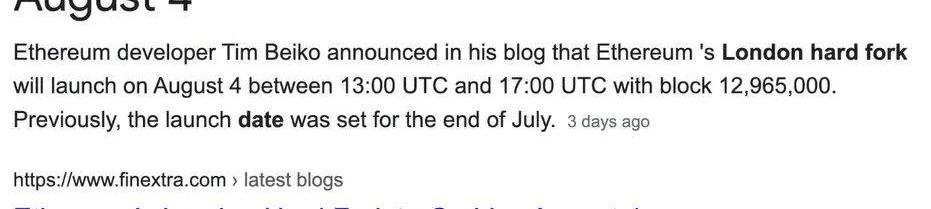 在2021年8月4日,以太坊將經歷稱為倫敦硬分叉的事情,它將通過區塊12,965,000。