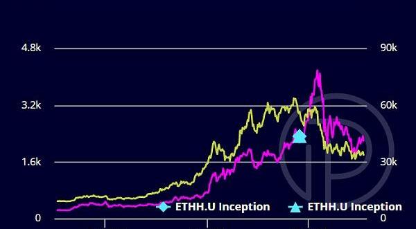 BTC和ETH走勢,黃線為BTC,紫線為ETH