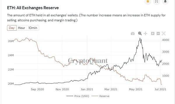 此外,加密貨幣分析公司CryptoQuant的監控數據顯示,ETH交易者的持幣行為有所增加,最直接的信號就是所有加密貨幣交易平臺的ETH余額再次大幅下降,達到了近兩年半的最低水平。