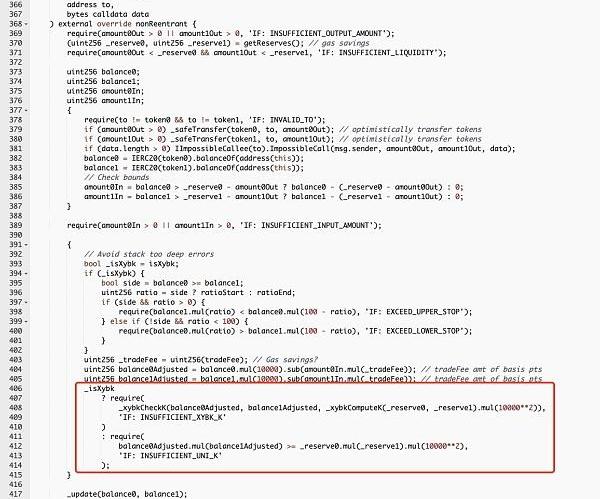 但通過分析ImpossiblePair的swap函數與cheapSwap函數的具體邏輯,我們發現一個驚人的情況:在swap函數中進行了K值檢查,而在cheapSwap函數卻未進行K值檢查而直接進行了update操作。這就導致了攻擊者進行了多次兌換操作獲得了額外的BUSD。