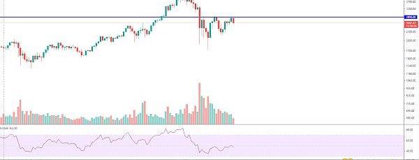 目前日線走勢依舊維持在3800美金第一階段起漲趨勢線附近震蕩整理,只要該趨勢線不有效跌破,后面就有醞釀周線級別反彈的機會,技術上前期大跌近期也有超跌反彈的需求,所以要多點耐心,這幾天反彈量能未放大,所以下方RSI觸碰壓制線暫時無法突破,短期價格遇阻回落,不過下降空間也有限,不要盲目殺跌,耐心等待后續行情強勢,趨勢線支撐34000美金。