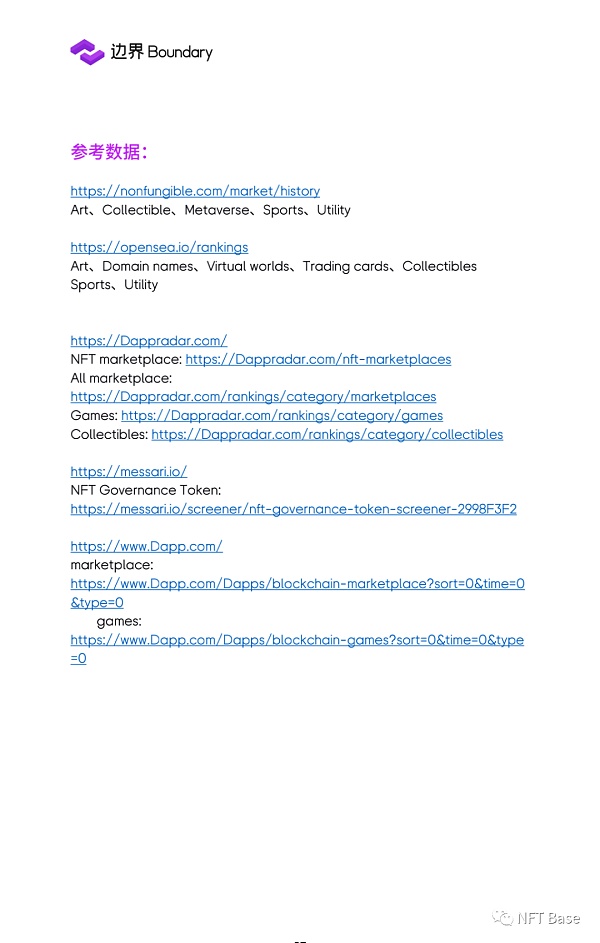 本報告通過枚舉、分析、設想當前NFT行業的: