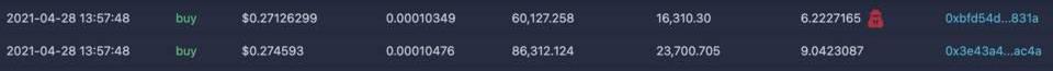 與此同時,機器人發出另一筆賣出交易,設置GasPrice同樣為40.5Gwei,因為時間順序的原因,緊貼著用戶正常交易完成。