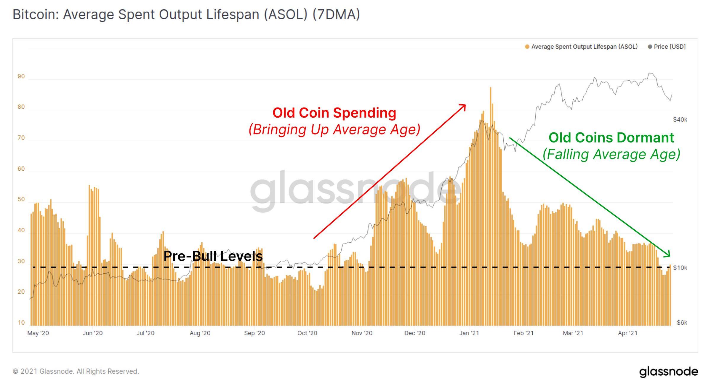 ASOL表示所有花費的UTXO的平均年齡;