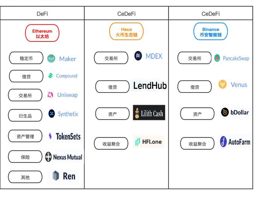 傳統金融體系中存在著不同的角色,包括貨幣、中央銀行、商業銀行、投資銀行、交易所、券商、保險、支付和資產管理,Defi通過不同的應用來實現相似的功能。