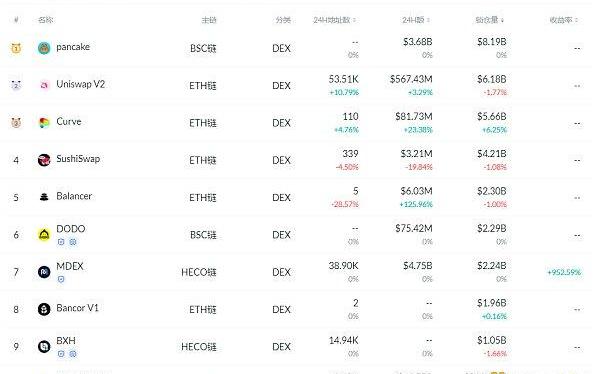 過去24小時去中心化交易所的交易量數據來源:Debank