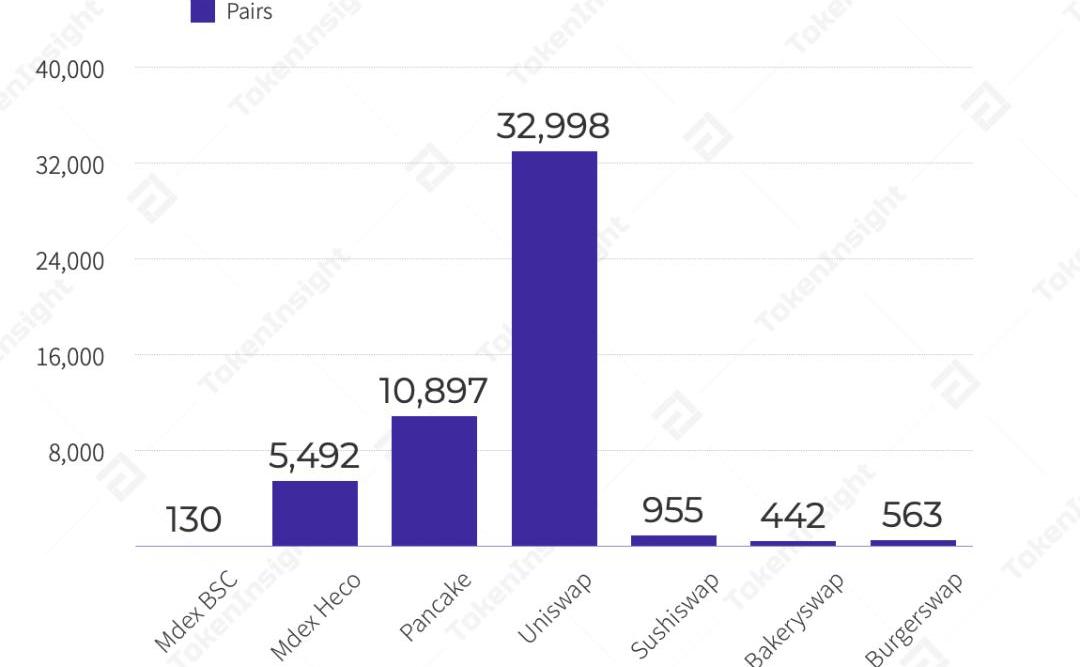 去中心化交易所交易對數量對比,來源:各交易所官網,tokeninsight.com