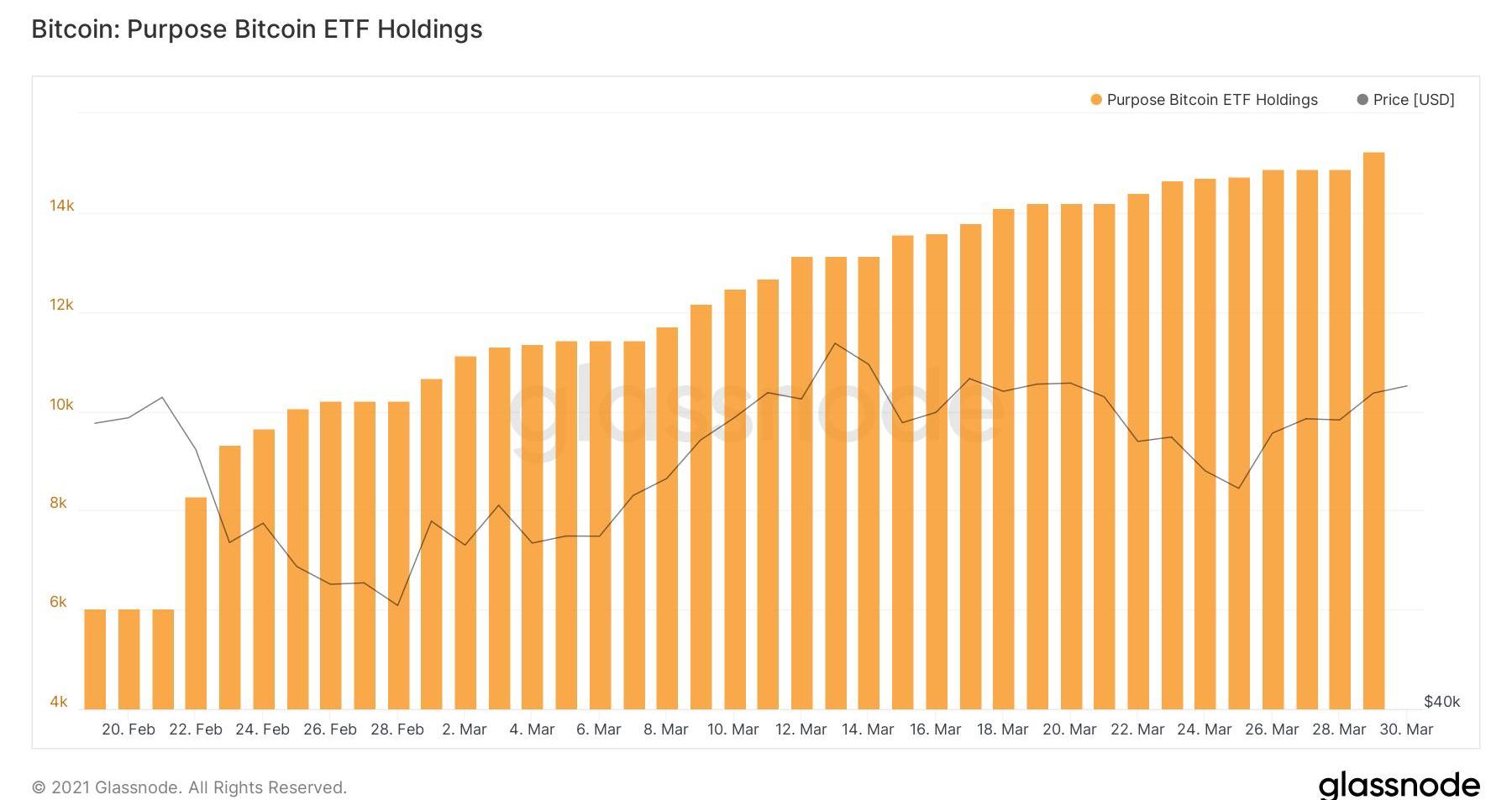 值得注意的是,山寨幣最近一個月的表現超越比特幣是其一,而背后也揭示了比特幣在5-6萬美元/枚價格區間已經震蕩了一個月,此外根據Glassnode數據,比特幣ETF的持倉量近期趨于放緩。