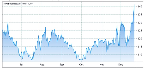 Grayscale比特幣信托溢價 來源:TradingView和Grayscale