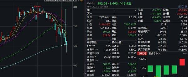 不過,自2月8日馬斯克對外披露投資15億美元購入比特幣的消息后,特斯拉股價就一路下挫,截至目前跌去了30%,市值縮水超2500億美元,最新市值為5739億美元。2020年,特斯拉股價漲幅驚人,年內增長超過743%。
