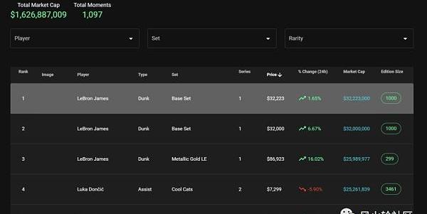 另一個也是這方面值得一提的是最近海外比較火的一個應用NBATopShot,該應用相當于是把NBA的文化IP(已獲授權)做成了一組NFT代幣,網站把NBA比賽中明星球員的精彩瞬間轉變成NFT數字收藏品,來供球迷粉絲們收藏。
