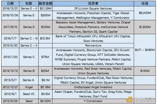 據不少媒體報道,Coinbase最新估值約為80億美元,但這一數據是過時數據。據Crunchbase數據,Coinbase于2018年10月宣布完成E輪融資,募資3億美元,那時的估值已經是77億美元了。Coinbase接著在2018年12月21日完成Secondary Market輪(E輪第二次)融資。