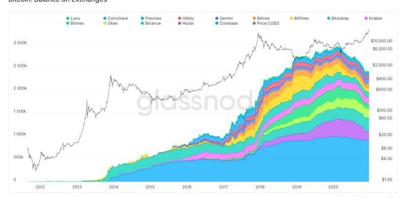 隨著時間的推移,比特幣的總量在不斷增加,因為每天都有更多的比特幣被開采出來,但交易所的可用供應量卻一直在下降。這使得新投資者購買比特幣變得更加困難或更加昂貴。
