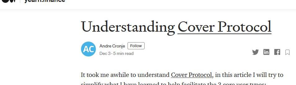 角色方面,投保人自然就是想給某項目買固定期限保險的人,據官網,目前Cover支持為Aave、Balancer、Curve等項目投保,投保形式是用DAI購買CLAIM。假如1CLAIM價格是0.1DAI,那么花費1DAI可以得到10CLAIM的保額,索賠時就可以用10CLAIM換得10DAI。