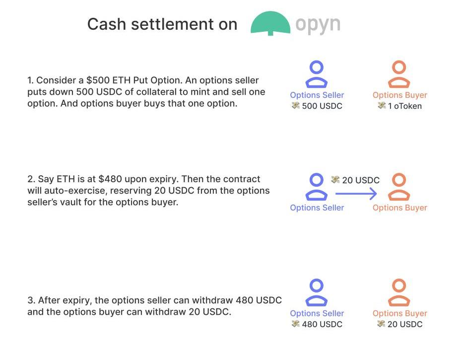 現金結算,意味著期權持有人不必提供標的資產來行使期權。相反,期權在抵押資產中結算,期權持有人從期權賣方處獲得標的資產到期價格與執行價之間的差額。