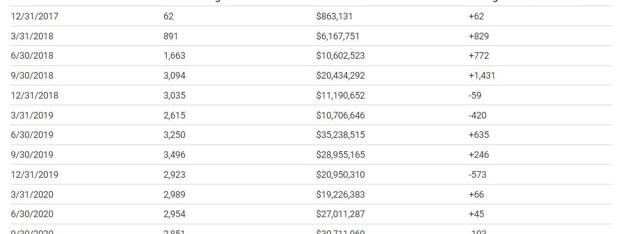 MicroStrategy是一家開發商業智能軟件的科技公司。該公司將比特幣作為主要儲備資產,今年8月,MicroStrategy宣布以2.5億美元買入比特幣,隨后又買入了1.75億美元的比特幣。