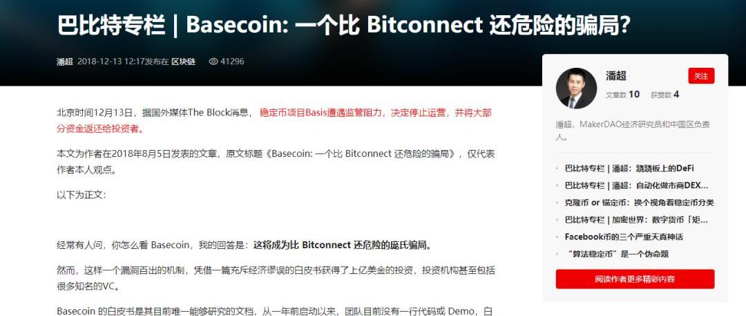 去搜索相關的文章,MakerDAO中國區負責人潘超的文章是相對較多的。《“算法穩定幣”是一個偽命題》還有這篇: