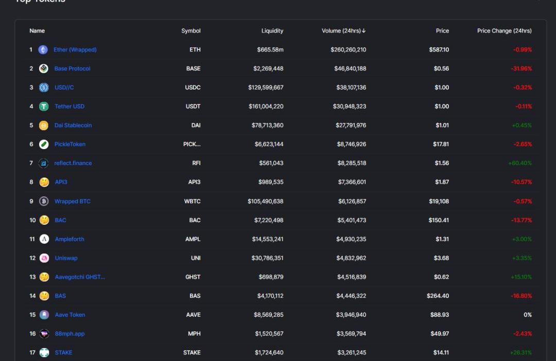 2020年12月8日上午查了一下uniswap,這里面定睛一看可以看到交易量做大的前18名幣種,amplforth、Base、basisshare、basiscash等都是彈性穩定幣。