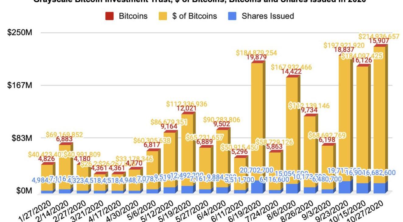 鑒于對灰度產品的投資僅限于經過認證的合格投資者,因此GBTC和ETHE份額的上漲表明機構正在涌入加密市場。