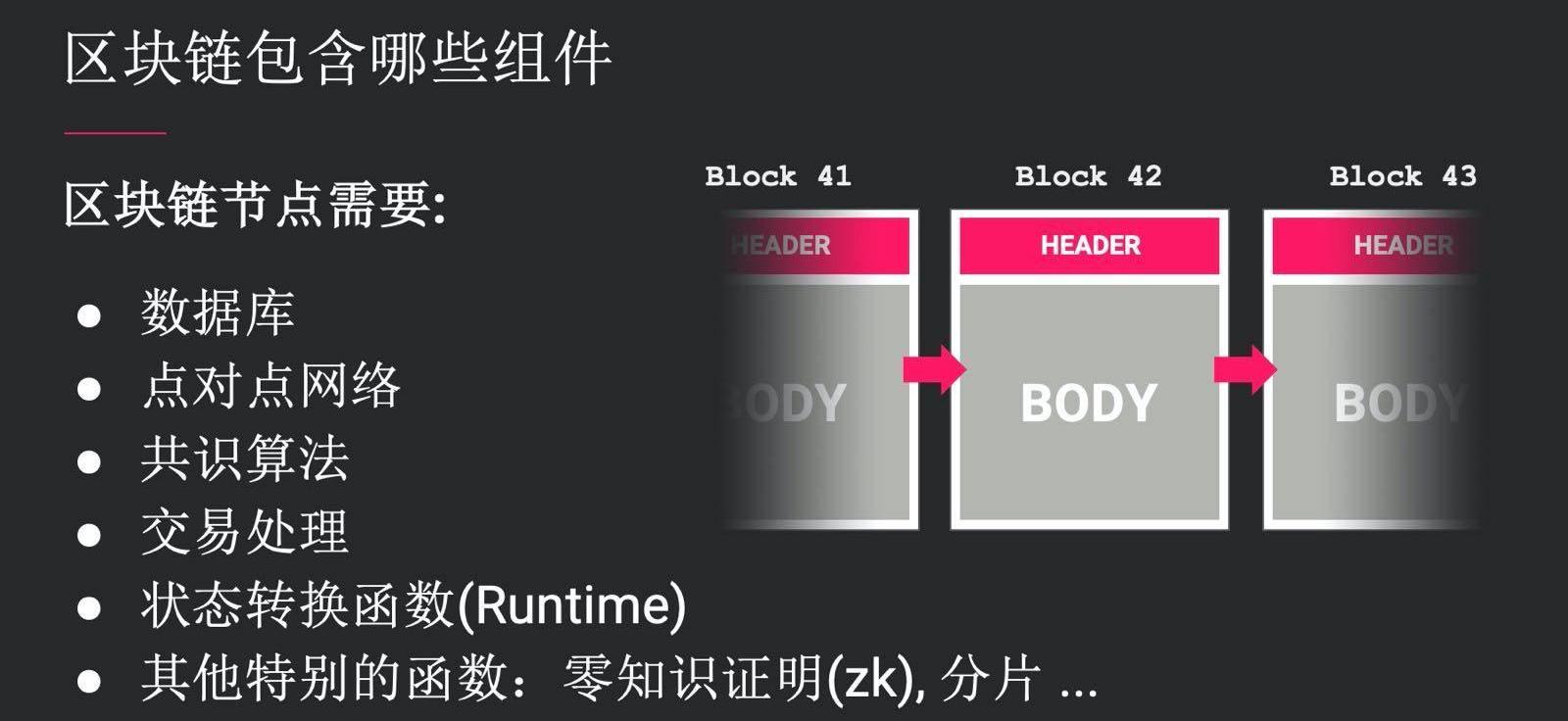 而我們Parity其實從Gavin在很早期15年建立Parity的時候,我們在最初就在幫以太坊開發它的Rust客戶端,之前是叫做ParityEthereum現在改名叫做OpenEthereum,我們積累了很多各種各樣的對區塊鏈的開發經驗,特別是在從18年開始積極的開發Polkadot跨鏈項目,我們吸收以及總結了很多開發供應鏈的這樣的一些經驗,然后從這些經驗里邊,我們抽取以及進一步的深化,做出了這樣的一個區塊鏈開發框架。而這套框架我們命名為Substrate。