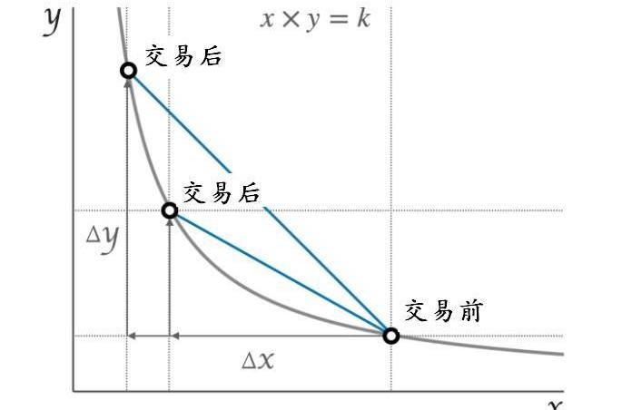 在沒人增加或移除流動性的前提下,池中兩邊代幣總量的乘積為常數