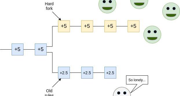 從你的角度來說,你的確還擁有在你所認同的規則基礎上構建出來的系統中的貨幣,但那又如何?其他人都不再接受你的貨幣了。交易所不會接受,網站上可能會顯示新貨幣的價格節節高漲,但這新幣指的是擁有多數用戶的鏈上的貨幣,你的貨幣會變得一文不值。密碼學貨幣與區塊鏈從根本上來說乃是社會建構。如果沒有其他人相信,它們將變得毫無意義。