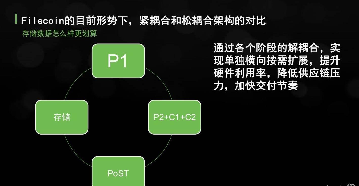 分享一下我個人對于IPFS存儲的思考,我注意到今天參與活動的規格差異非常大。對于希捷而言,從P1到C2的過程并不是我們關心的階段。現在有很多礦機是所謂的緊耦合的結構,就是把上面這幾個階段統統放在一個盒子里處理。
