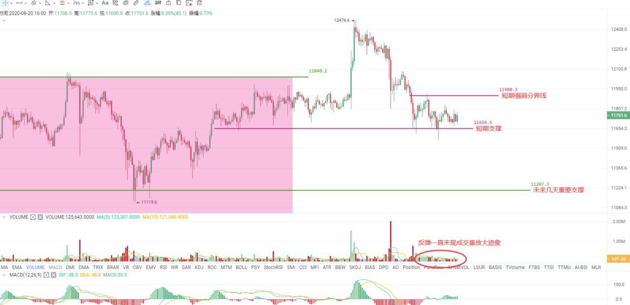 主觀預期:市場實際走勢和昨晚預期非常一致。預估接下來幣價暫時于11650-11900區間靠下區域窄幅盤整,盤整后繼續向下運行,重點關注11200支撐本段不作為交易策略參考。