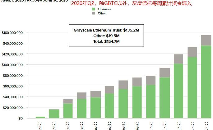 2020年Q2,除GBTC以外,灰度信托每周累計資金流入