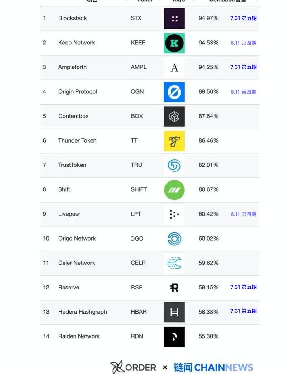 XRP/HKD-0.76%7月31日,Coinbase公布了一輪新的上幣評估名單,共19個項目,加上6月11日公布的評估名單,今年已有37個項目被Coinbase納入考量。