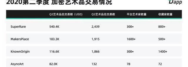 在2020年第二季度統計調查中,目前頭部加密藝術交易平臺有超過2000余位藝術家,接近3000名收藏者。