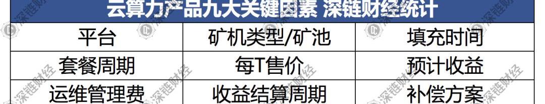 通過對市面上云算力產品的數據對比分析,DeepChain深鏈總結出了投資者選擇云算力產品需要關注的9大維度: