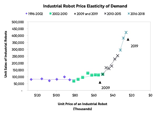 根據萊特定律,若純粹的虛擬現實交互式控制系統價格與基于PC系統的價格相當,那么在2030年之前,VR頭戴式設備的產量和成本曲線將都走出一條雷同于智能手機的曲線。
